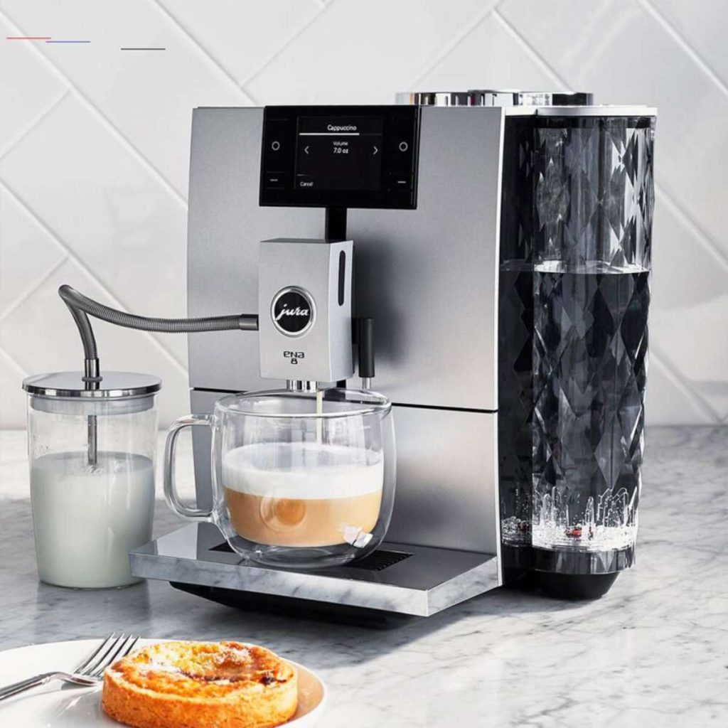 Nhắc đến phân khúc cao cấp, không thể bỏ qua Jura ENA 8 – thương hiệu máy pha cà phê nổi tiếng của Thụy Sĩ.