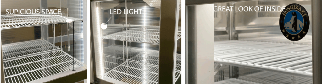 Tủ được thiết kế 6 cánh mở độc lập, giúp người dùng dễ dàng phân chia khu vực lưu trữ thực phẩm chín – sống, rau củ – thịt cá, tránh lẫn mùi và đảm bảo an toàn vệ sinh thực phẩm. Hoshizaki sử dụng máy nén công suất cao kết hợp hệ thống làm lạnh cưỡng bức giúp luồng khí lạnh phân bố đồng đều, duy trì nhiệt độ ổn định dù tủ thường xuyên mở cửa.